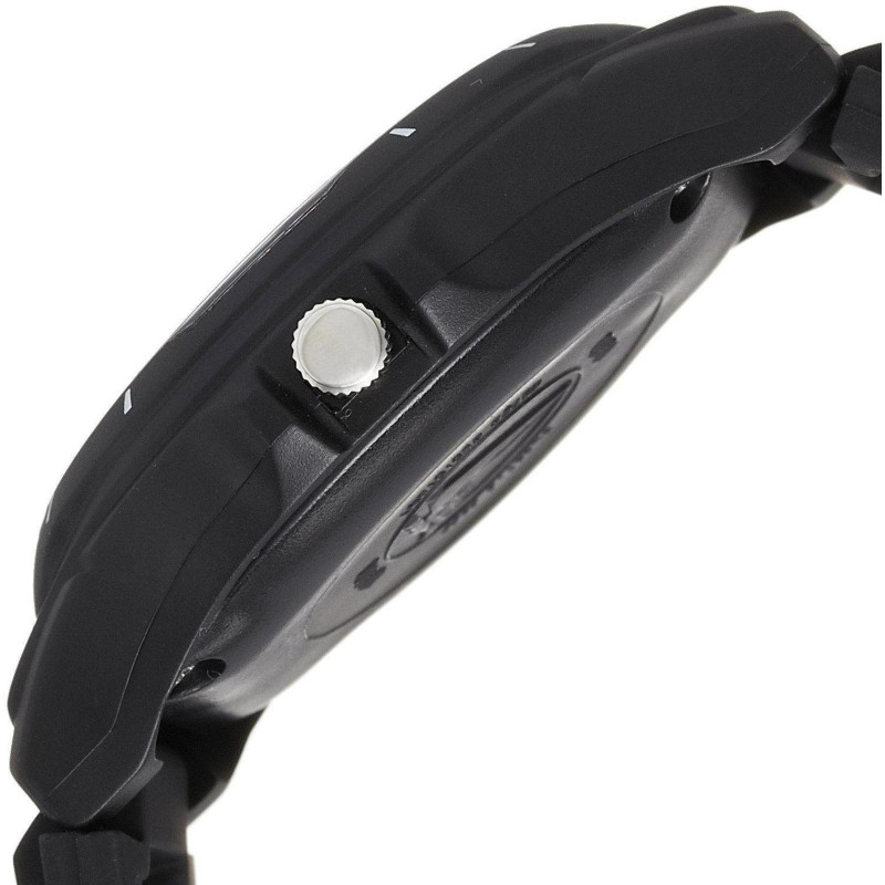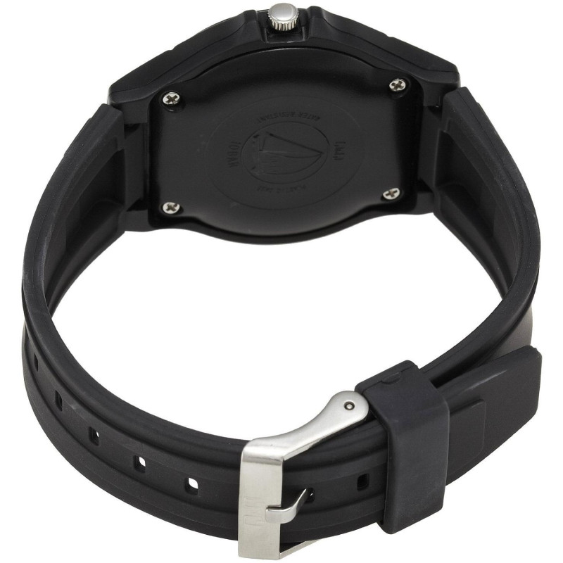 Модель имеет водонепроницаемость 100 м. Корпус выполнен из материала – пластик. Прочное минеральное стекло надежно защищает циферблат от ударов и других повреждений. Удобный каучук ремешок позволяет часам комфортно сидеть на запястье. Из дополнительных функций имеются: секунды.