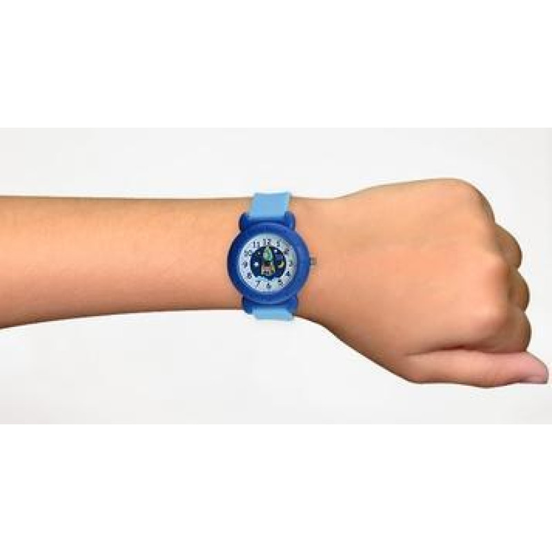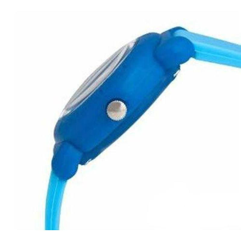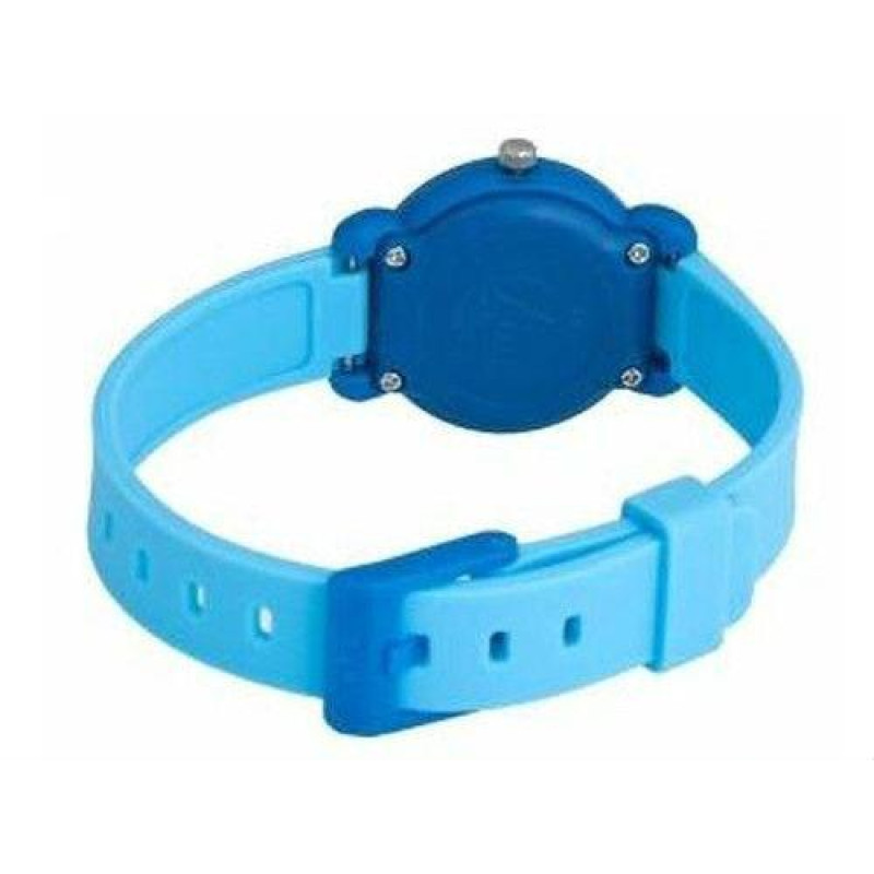 Голубой полимерный ремешок. Синий корпус. Пластиковая задняя крышка. Цвет циферблата — бело-синий. Н..
