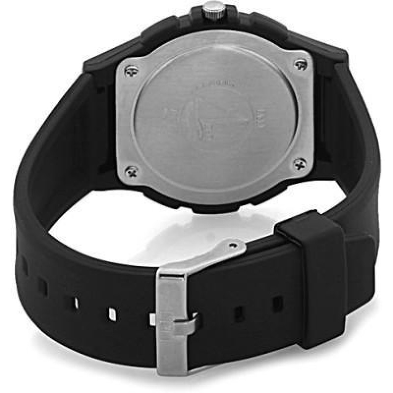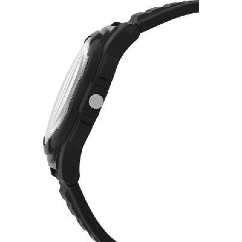 Модель имеет водонепроницаемость 100 м. Корпус выполнен из материала – комбинированный (сталь/пластик). Прочное минеральное стекло надежно защищает циферблат от ударов и других повреждений. Удобный полимер ремешок позволяет часам комфортно сидеть на запястье. Из дополнительных функций имеются: секунды.