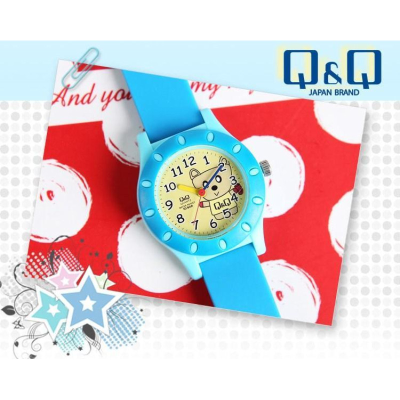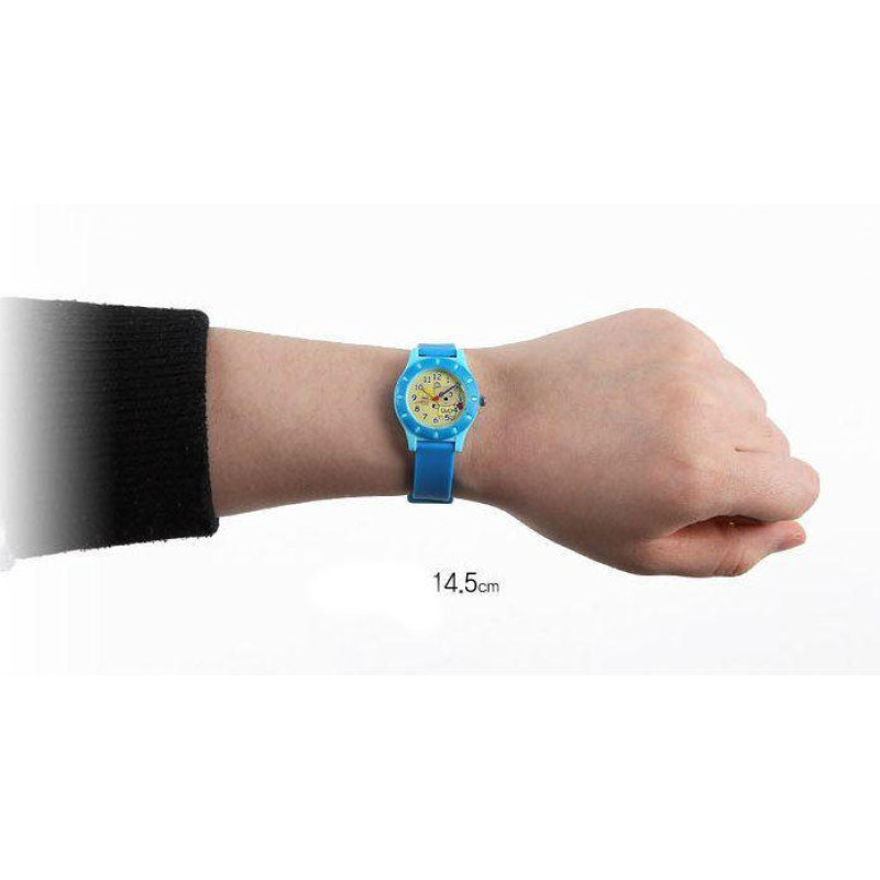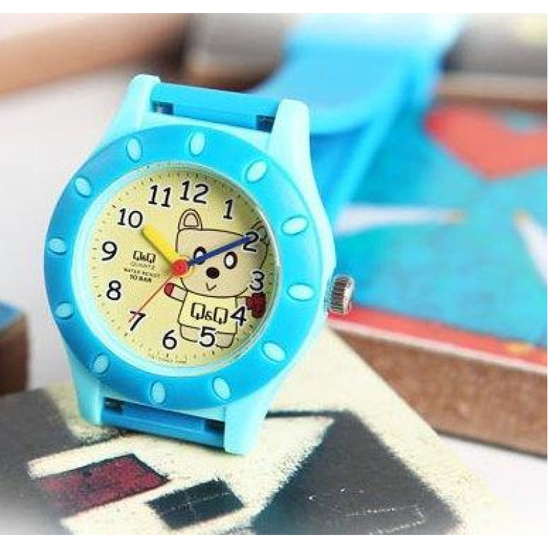 Голубой полимерный ремешок. Корпус голубого цвета. На циферблате изображен мишка. Вид циферблата — а..