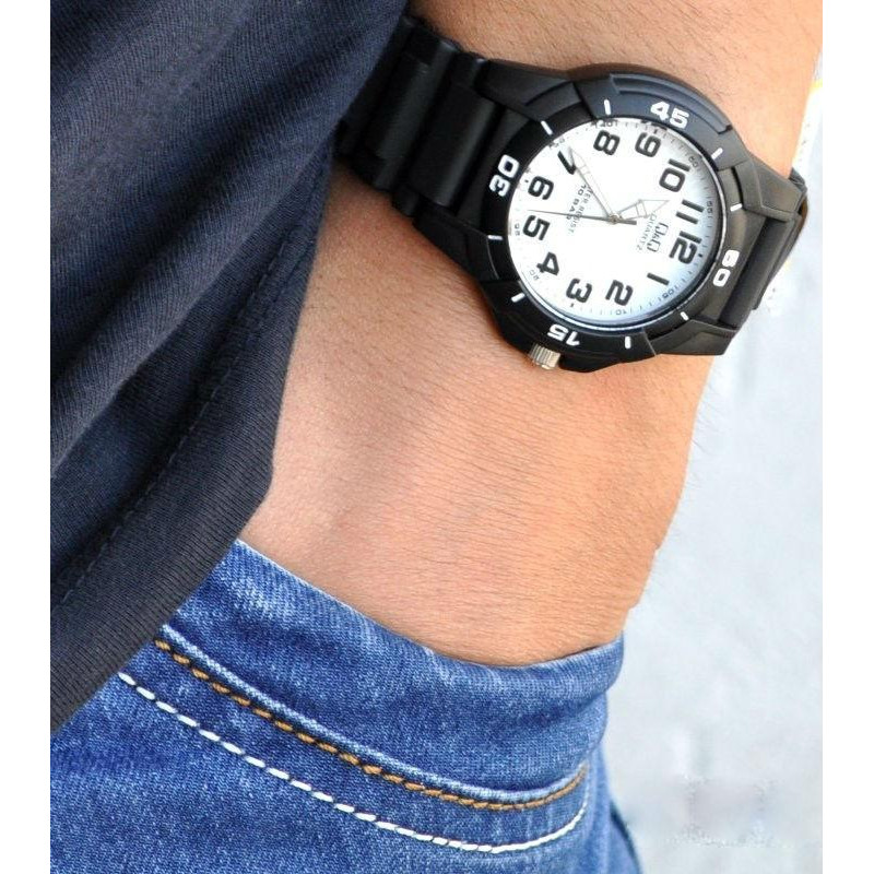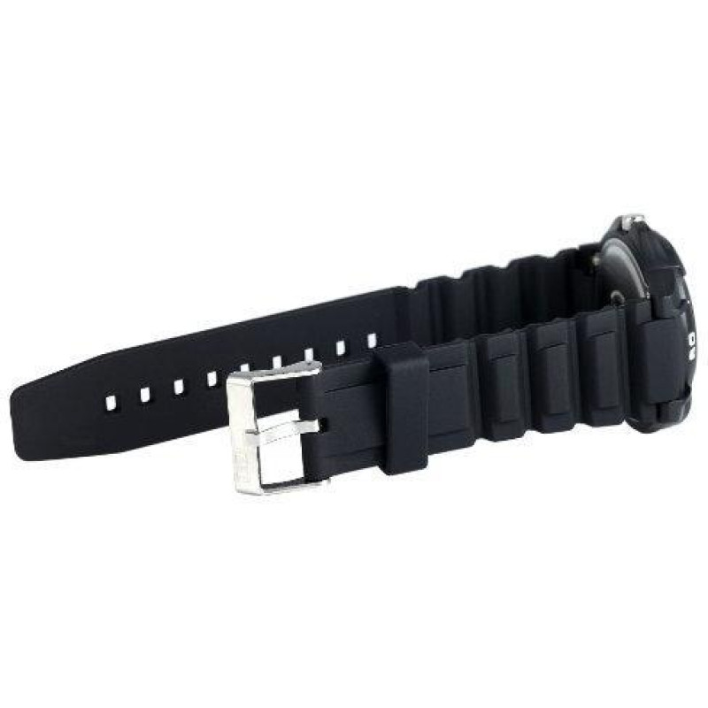 Модель имеет водонепроницаемость 100 м. Корпус выполнен из материала – пластик. Прочное пластиковое стекло надежно защищает циферблат от ударов и других повреждений. Удобный полимер ремешок позволяет часам комфортно сидеть на запястье. Из дополнительных функций имеются: секунды.