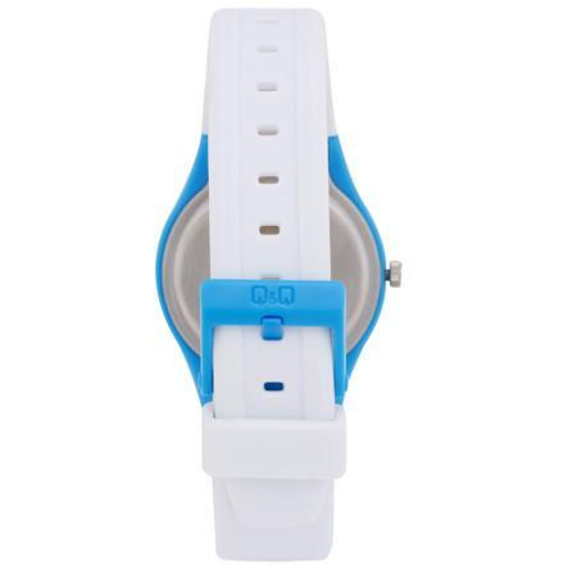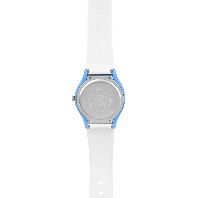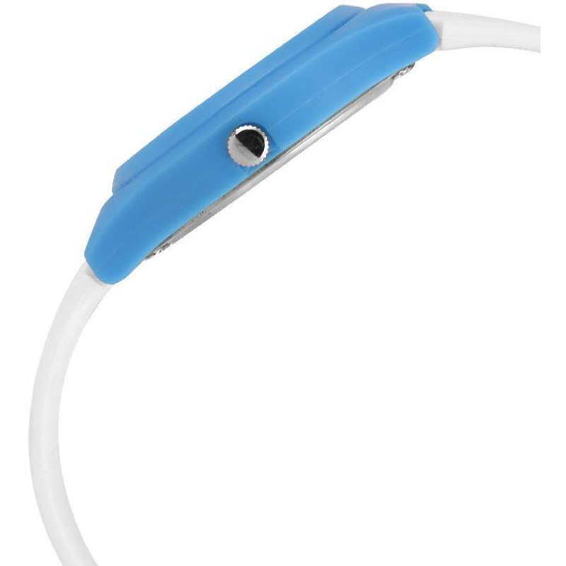 Белый полимерный ремешок. Корпус голубого цвета. Задняя крышка корпуса из нержавеющей стали. Цифербл..