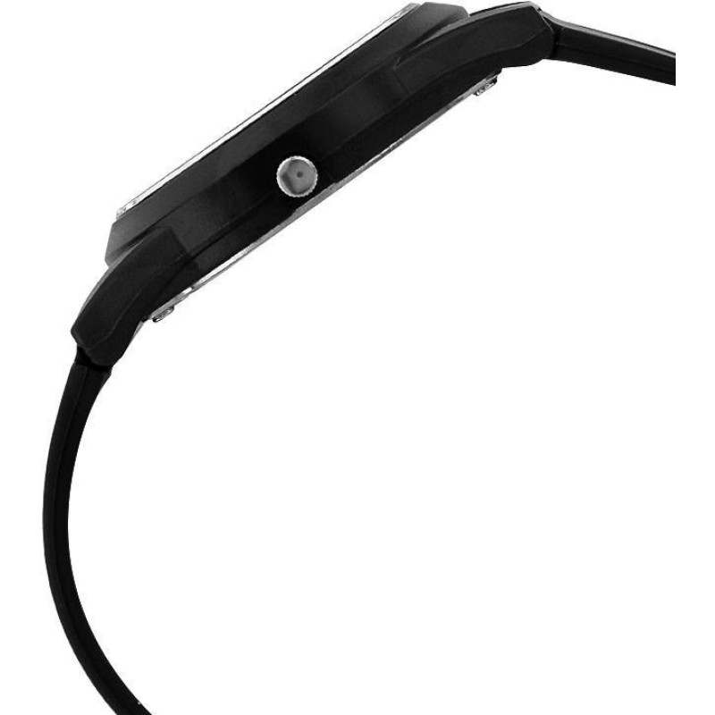 Модель имеет водонепроницаемость 100 м. Корпус выполнен из материала – пластик. Прочное пластиковое стекло надежно защищает циферблат от ударов и других повреждений. Удобный полимер ремешок позволяет часам комфортно сидеть на запястье. Из дополнительных функций имеются: секунды.