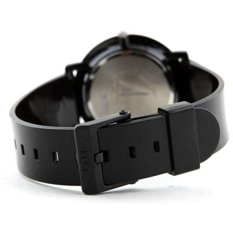 Чёрный полимерный ремешок. Корпус чёрного цвета. Цвет циферблата — чёрный. Вид циферблата — индексы...