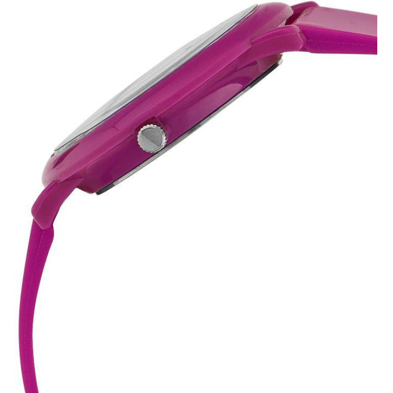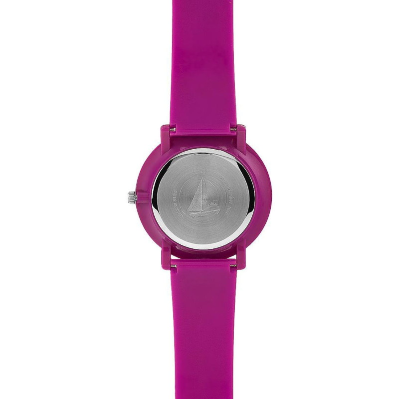 Малиновый полимерный ремешок. Корпус малинового цвета. Цвет циферблата — белый. Вид циферблата — инд..