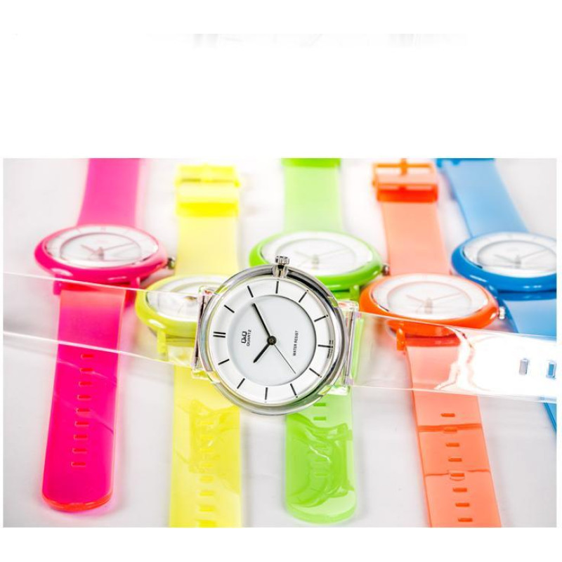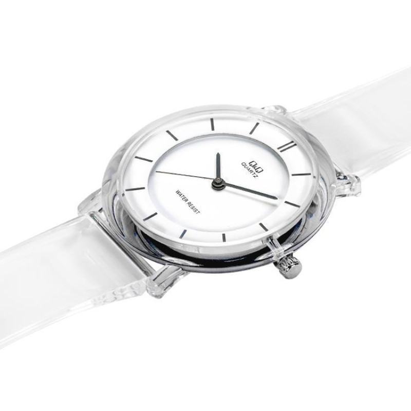 Прозрачный полимерный ремешок. Корпус серебристого цвета. Цвет циферблата — белый. Вид циферблата — ..