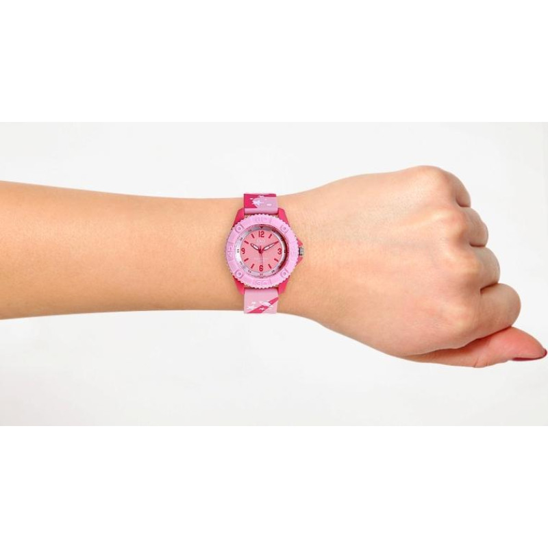 Розовый полимерный ремешок. Корпус розового цвета. Цвет циферблата — розовый. Вид циферблата — арабс..
