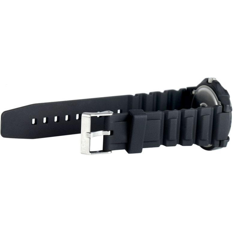 Чёрный полимерный ремешок. Корпус чёрного цвета. Цвет циферблата — чёрный. Вид циферблата — арабские..