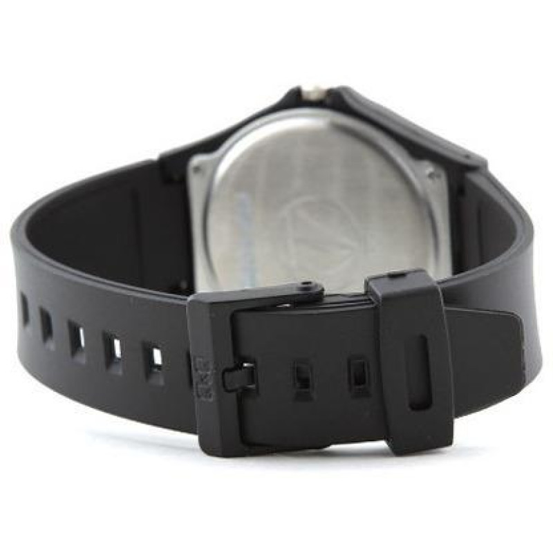 Модель имеет водонепроницаемость 100 м. Корпус выполнен из материала – пластик. Прочное минеральное стекло надежно защищает циферблат от ударов и других повреждений. Удобный силиконовый ремешок позволяет часам комфортно сидеть на запястье. Из дополнительных функций имеются: секунды.
