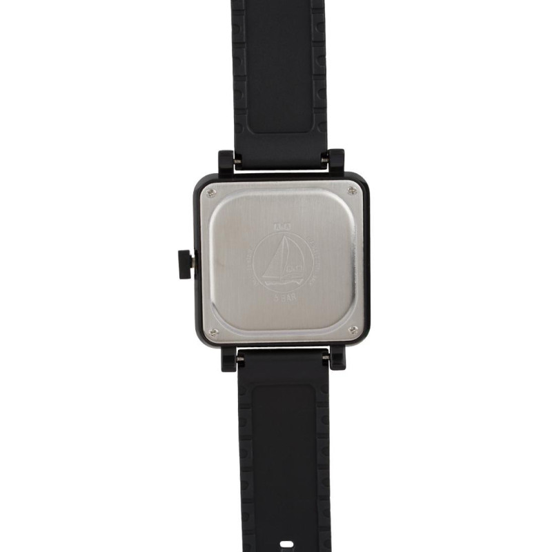 Чёрный полимерный ремешок. Корпус чёрного цвета. Цвет циферблата — белый. Вид циферблата — арабские ..
