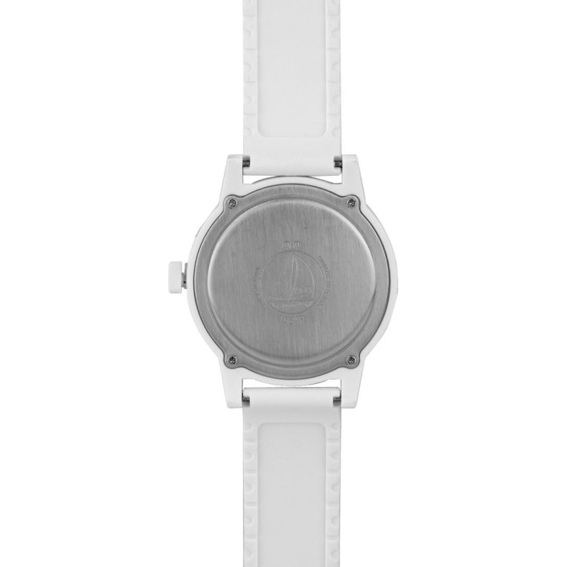 Белый силиконовый ремешок. Корпус белого цвета. Безель серебристого цвета. Цвет циферблата — белый. ..