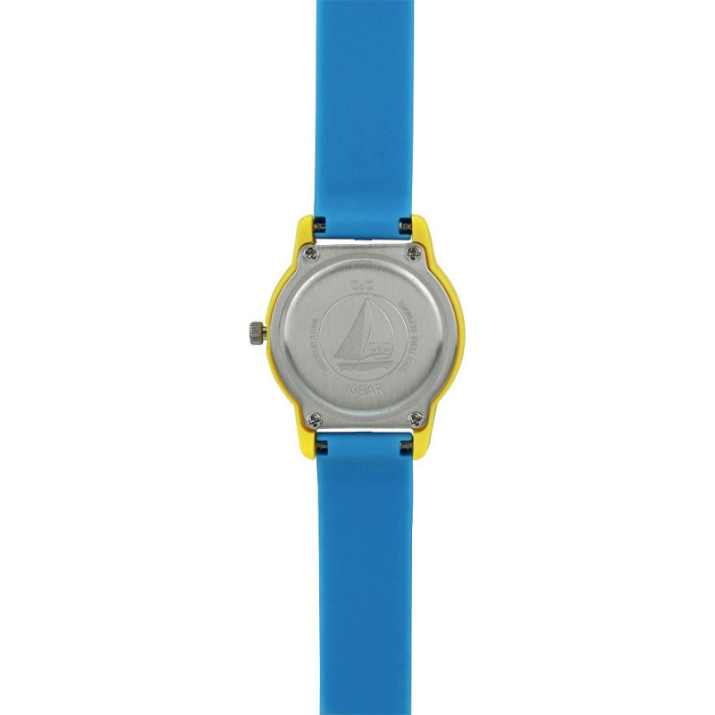 Голубой полимерный ремешок. Корпус желтого цвета. Цвет циферблата - белый. Вид циферблата — арабские..