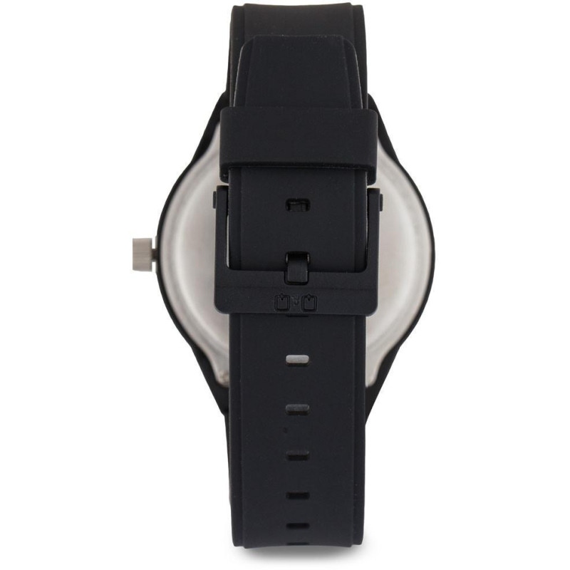 Модель имеет водонепроницаемость 100 м. Корпус выполнен из материала – пластик. Прочное минеральное стекло надежно защищает циферблат от ударов и других повреждений. Удобный силиконовый ремешок позволяет часам комфортно сидеть на запястье. Из дополнительных функций имеются: секунды.
