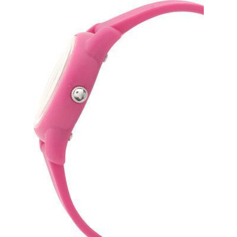 Розовый полимерный ремешок. Цвет циферблата — белый. Вид циферблата — арабские цифры. Установлен япо..