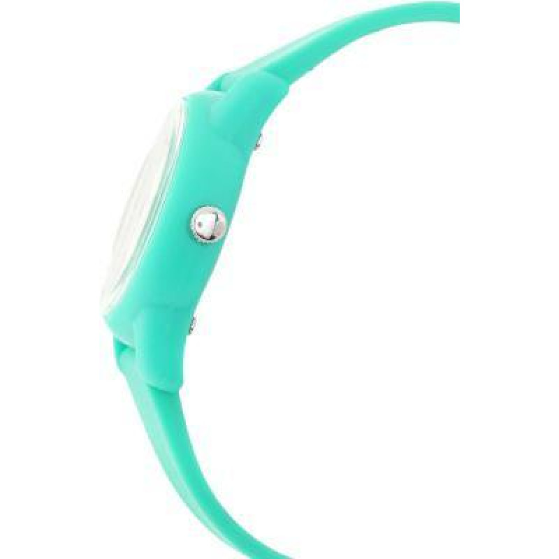 Зелёный полимерный ремешок. Цвет циферблата — белый. Вид циферблата — арабские цифры. Установлен япо..