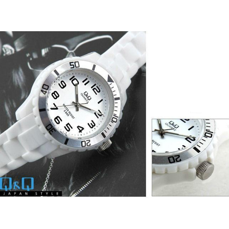 Белый силиконовый ремешок. Корпус белого цвета. Безель серебристого цвета. Цвет циферблата — белый. ..
