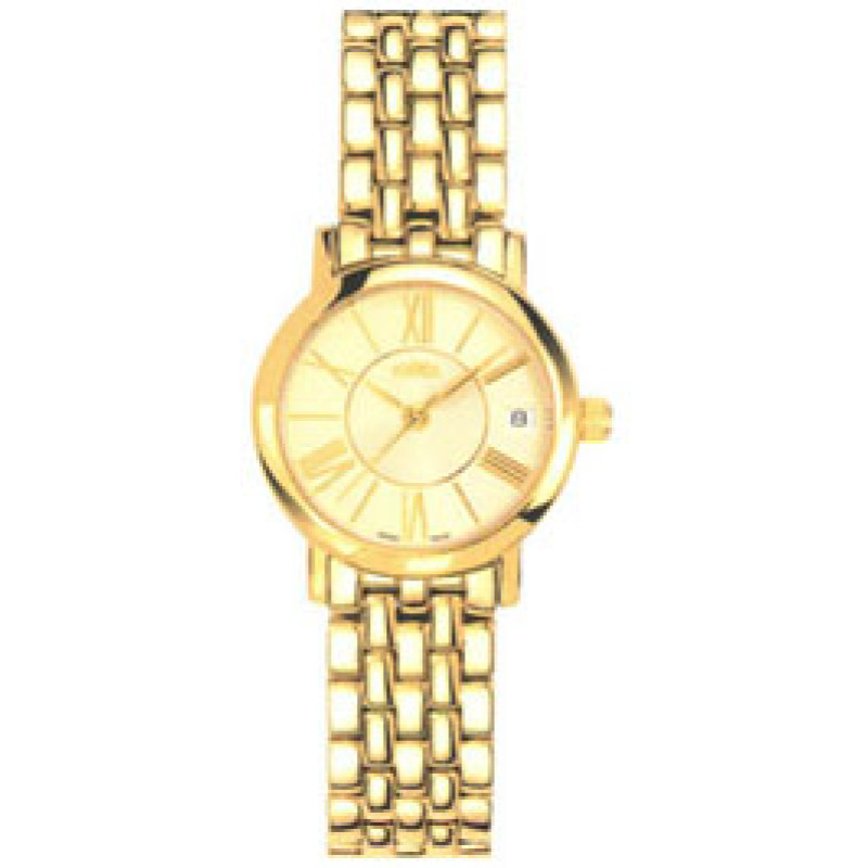 Калибр - Miyota 763. PVD покрытие корпуса золотого цвета. Корпус украшен кристаллами Swarovski. Перл..
