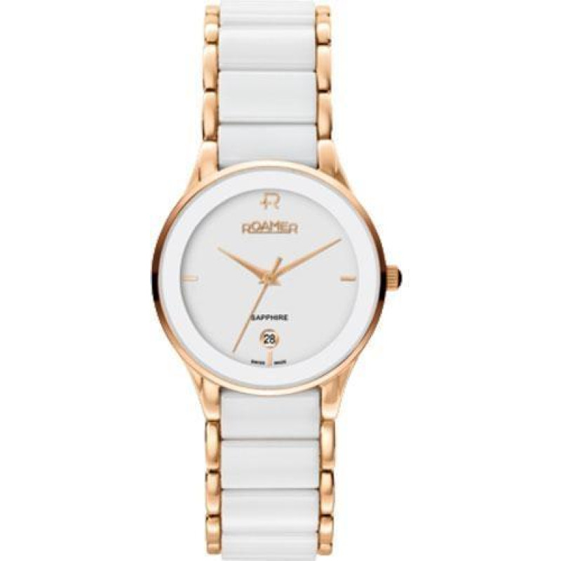 Модный, но немного сдержанный дизайн присущ модели Roamer 677981 49 25 60. Ее белоснежный цвет керам..