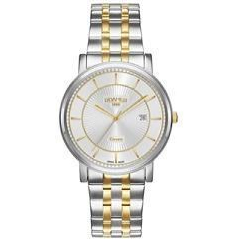 Модель имеет водонепроницаемость 50 м. Корпус выполнен из материала – сталь + PVD. Прочное сапфировое стекло надежно защищает циферблат от ударов и других повреждений. Удобный сталь + PVD браслет позволяет часам комфортно сидеть на запястье. Из дополнительных функций имеются: дата, секунды.