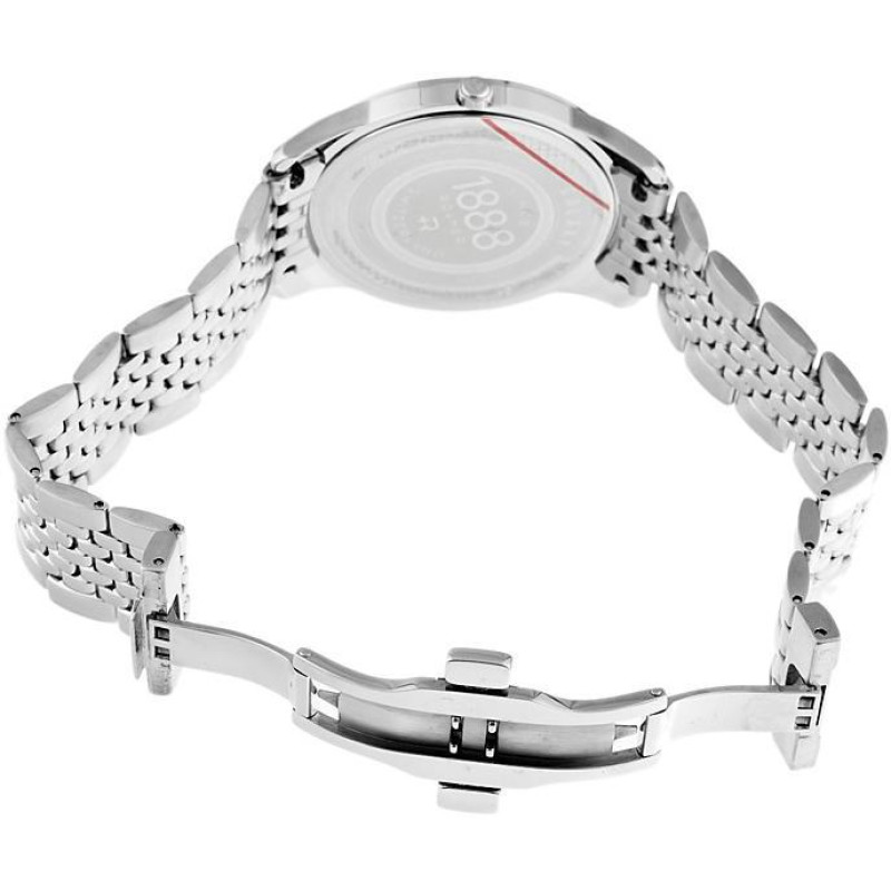 Модель имеет водонепроницаемость 30 м. Корпус выполнен из материала – сталь. Прочное сапфировое стекло надежно защищает циферблат от ударов и других повреждений. Удобный стальной браслет позволяет часам комфортно сидеть на запястье. Из дополнительных функций имеются: минуты, секунды, часы.