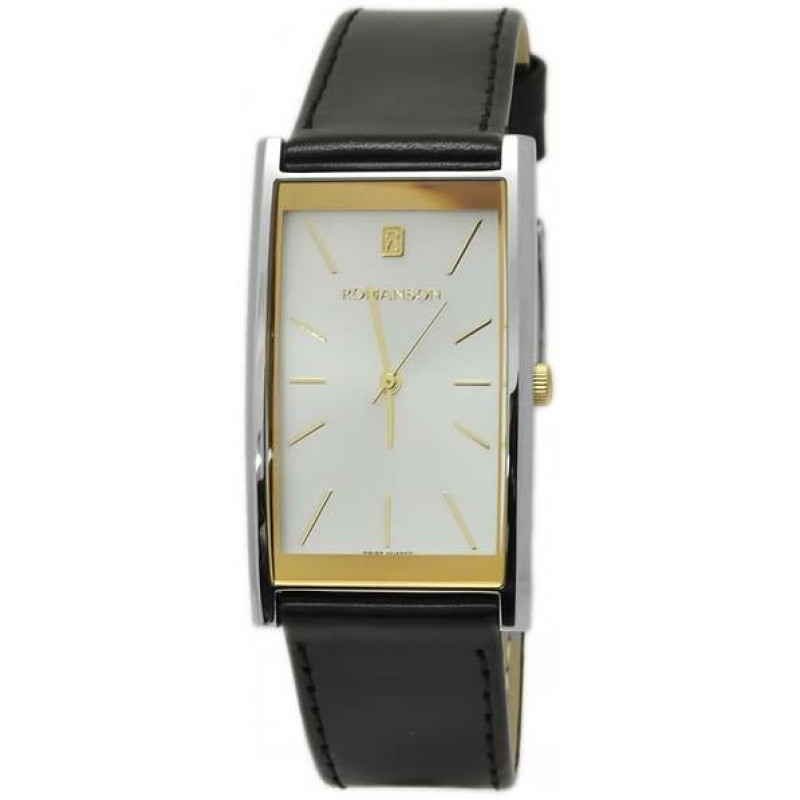 Корпус серебристого цвета с частичным PVD покрытием золотого цвета. Кожаный ремешок темно-коричневог..