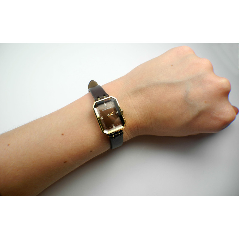 Корпус часов выполнен из стали с полным золотым PVD покрытием. Коричневый кожаный ремешок. Цвет цифе..