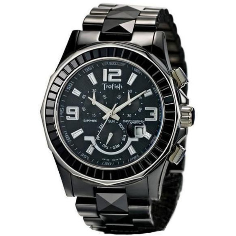 Модель имеет водонепроницаемость 30 м. Корпус выполнен из материала – комбинированный (сталь/керамика). Прочное сапфировое стекло надежно защищает циферблат от ударов и других повреждений. Удобный сталь + керамика браслет позволяет часам комфортно сидеть на запястье. Из дополнительных функций имеются: дата, день недели, секунды, хронограф.