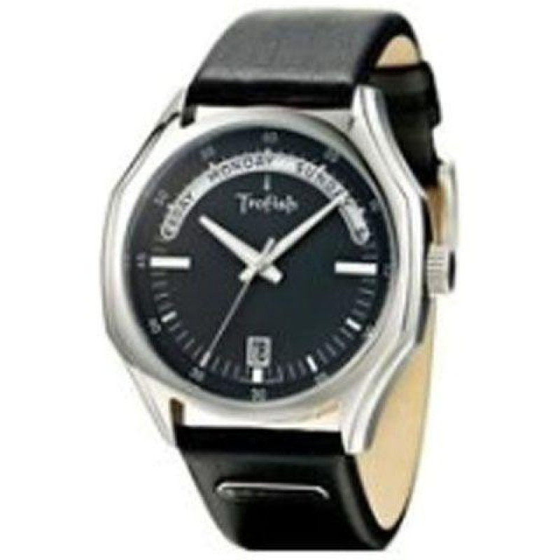 Корпус часов выполнен из стали. Черный кожаный ремешок. Цвет циферблата - черный. Индикация - метки...