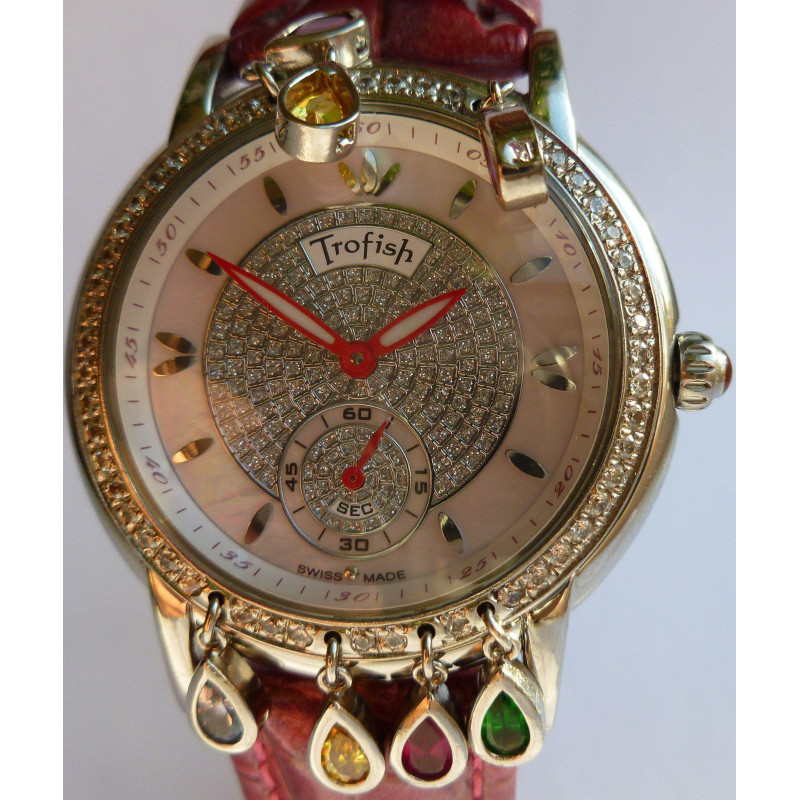 Корпус часов выполнен из стали с полным золотым PVD покрытием. Розовый коричневый ремешок. Цвет цифе..