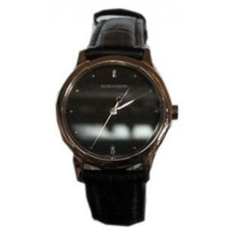 Корпус выполнен из стали с PVD покрытием цвета розового золота. Кожаный ремешок черного цвета. Цифер..
