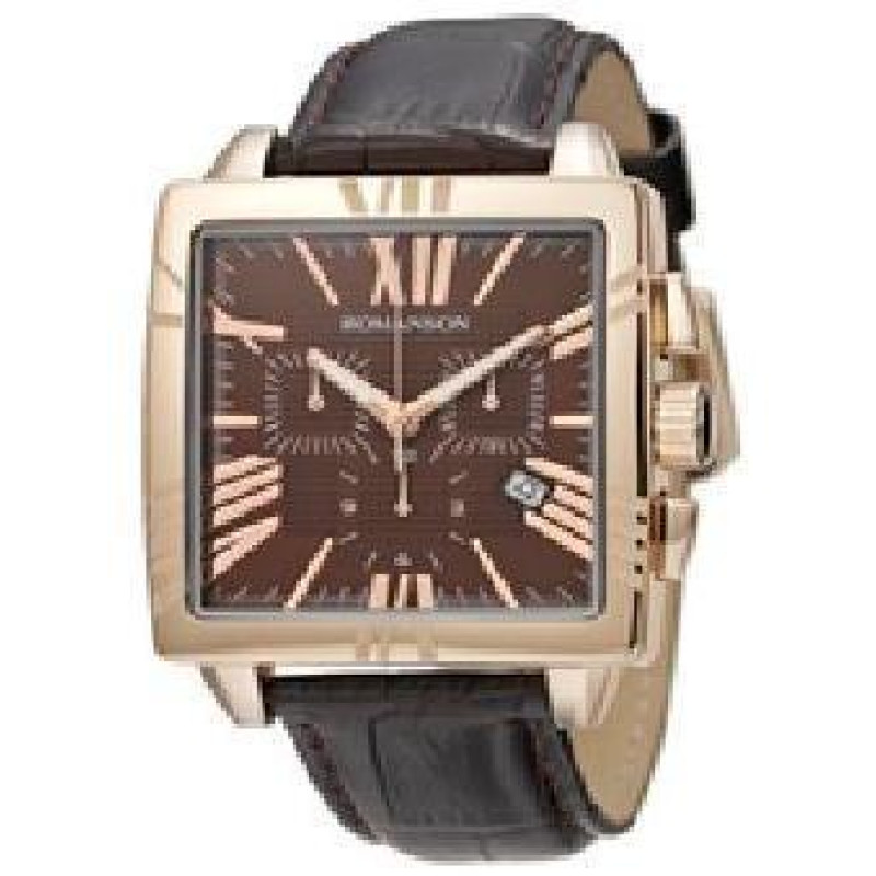 Корпус часов выполнен из стали с полным золотым PVD покрытием. Коричневый кожаный ремешок. Цвет цифе..