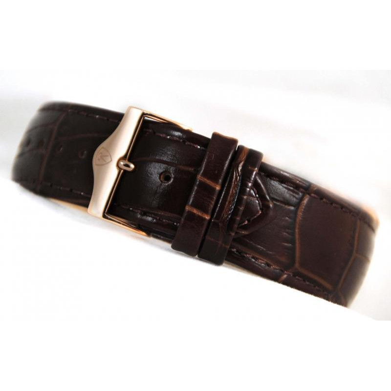 Корпус с PVD покрытием цвета розового золота. Кожаный ремешок коричневого цвета. Циферблат чёрного ц..
