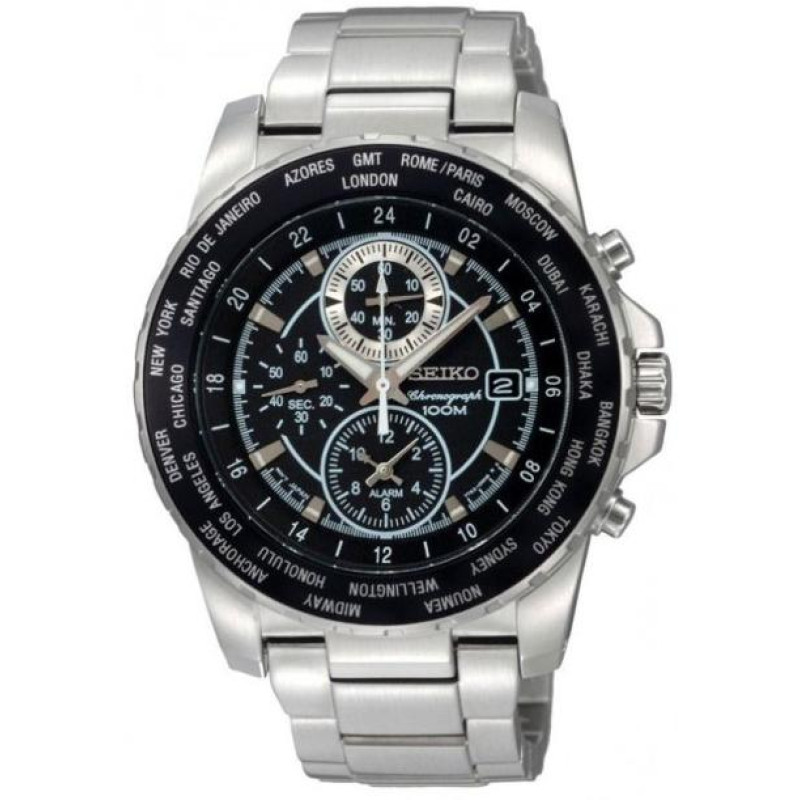 Модель имеет водонепроницаемость 100 м. Корпус выполнен из материала – сталь. Прочное минеральное стекло надежно защищает циферблат от ударов и других повреждений. Удобный стальной браслет позволяет часам комфортно сидеть на запястье. Из дополнительных функций имеются: будильник, дата, хронограф.