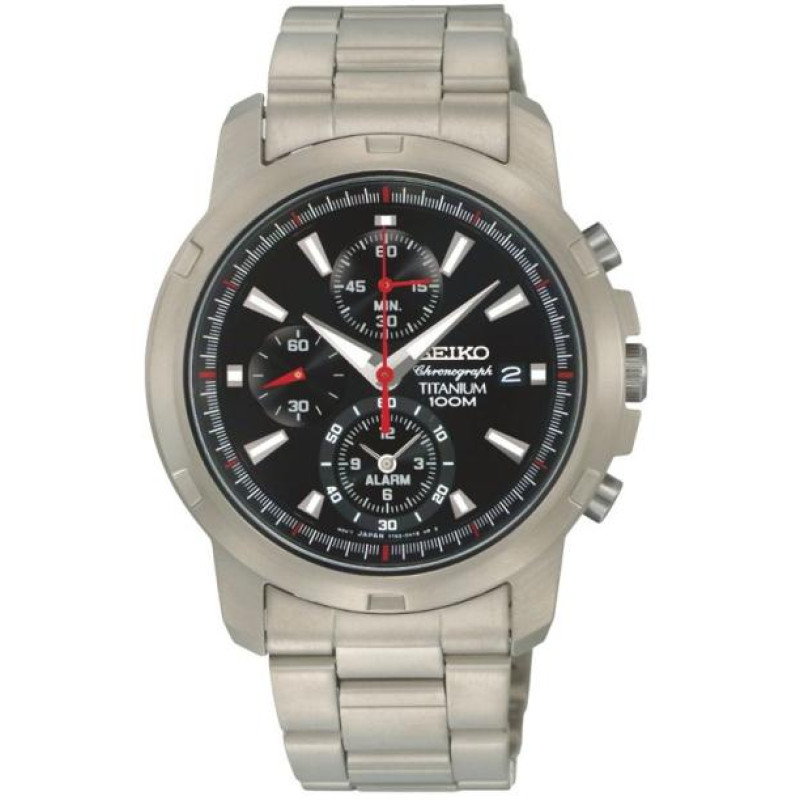 Модель имеет водонепроницаемость 100 м. Корпус выполнен из материала – титан. Прочное минеральное стекло надежно защищает циферблат от ударов и других повреждений. Удобный стальной браслет позволяет часам комфортно сидеть на запястье. Из дополнительных функций имеются: будильник, дата, хронограф.