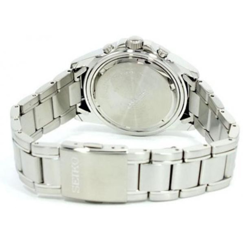 Модель имеет водонепроницаемость 100 м. Корпус выполнен из материала – сталь. Прочное xардлекс стекло надежно защищает циферблат от ударов и других повреждений. Удобный стальной браслет позволяет часам комфортно сидеть на запястье. Из дополнительных функций имеются: будильник, дата, минуты, секунды, хронограф, часы.