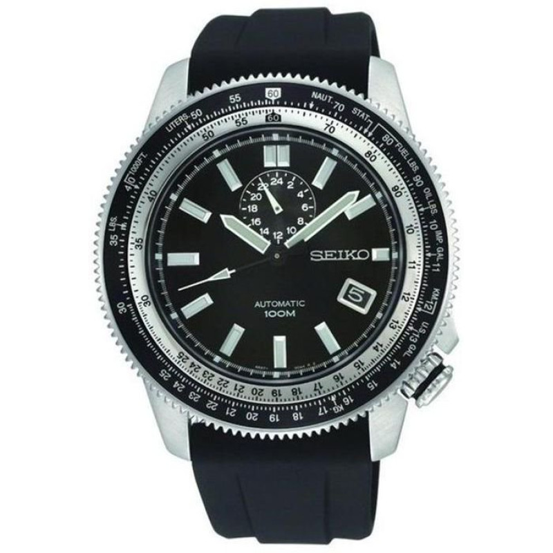 Модель имеет водонепроницаемость 100 м. Корпус выполнен из материала – сталь + PVD. Прочное xардлекс стекло надежно защищает циферблат от ударов и других повреждений. Удобный каучук ремешок позволяет часам комфортно сидеть на запястье. Из дополнительных функций имеются: дата, дополнительный показатель времени в 24-х часовом формате, минуты, секунды, функция логарифмической линейки, часы.