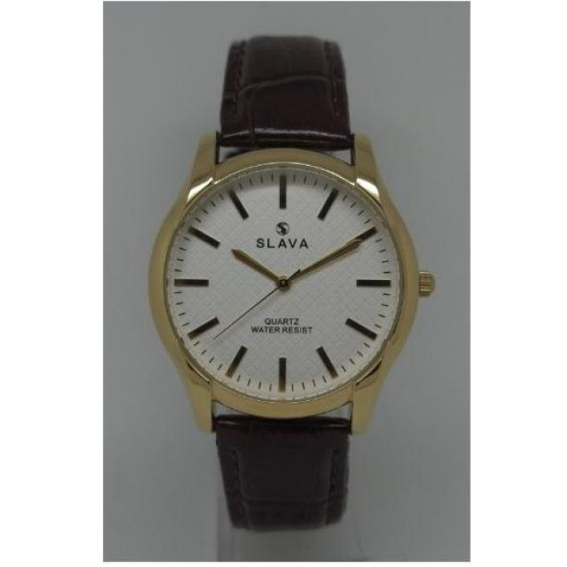 Мужские кварцевые часы от польского производителя Slava. Данная модель имеет корпус из прочной латун..