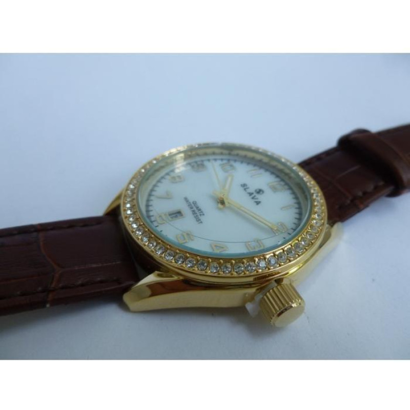 Женские кварцевые часы от польского производителя Slava. Данная модель имеет корпус из прочной латун..
