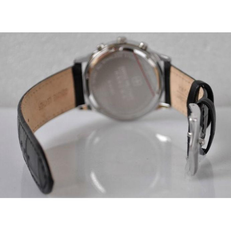 Модель имеет водонепроницаемость 100 м. Корпус выполнен из материала – сталь. Прочное сапфировое стекло надежно защищает циферблат от ударов и других повреждений. Удобный кожаный ремешок позволяет часам комфортно сидеть на запястье. Из дополнительных функций имеются: дата, минуты, секунды, хронограф, часы.