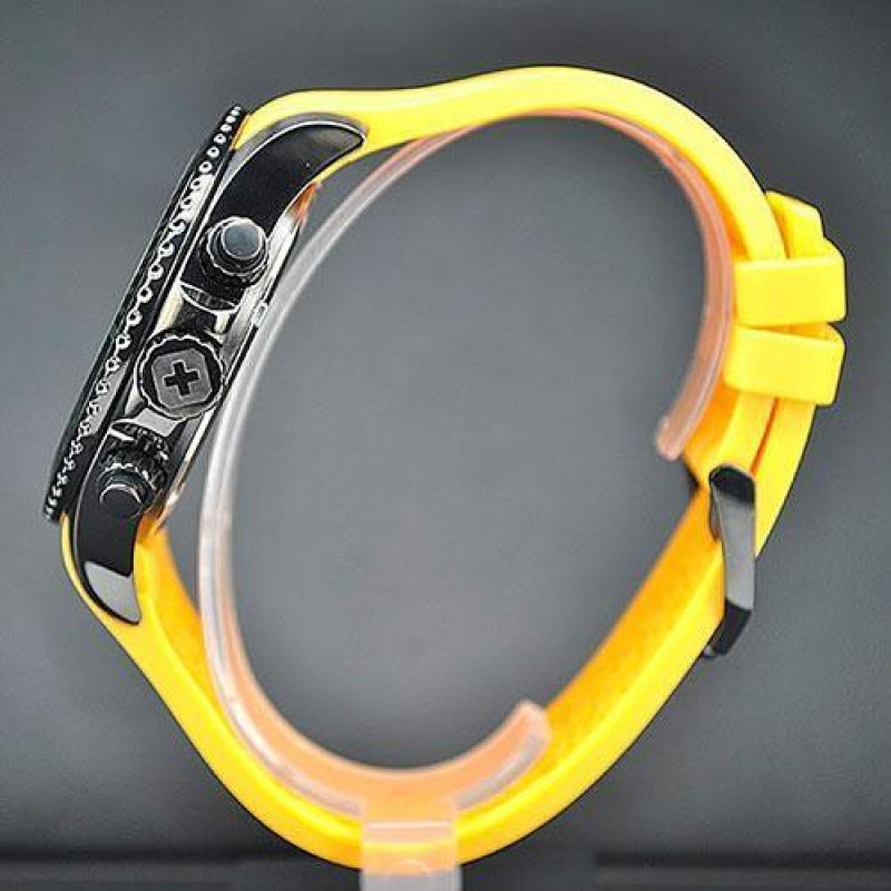 Модель имеет водонепроницаемость 100 м. Корпус выполнен из материала – сталь + PVD. Прочное сапфировое стекло надежно защищает циферблат от ударов и других повреждений. Удобный каучук ремешок позволяет часам комфортно сидеть на запястье. Из дополнительных функций имеются: вращающийся безель, дата, день недели, секунды, тахиметр, хронограф.