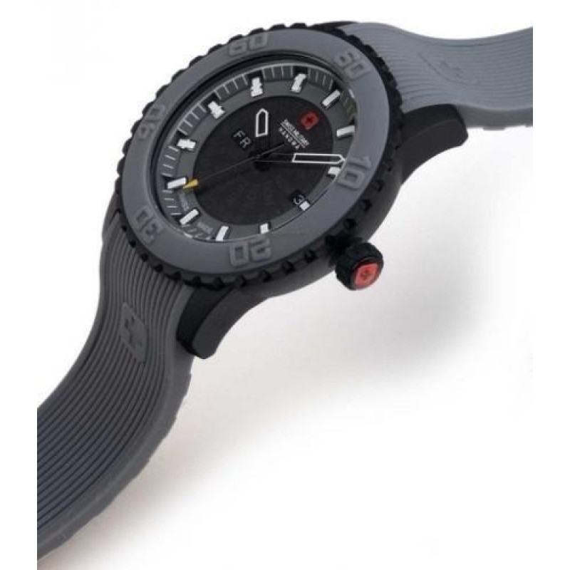 Швейцарские кварцевые часы. Корпус комбинированный (сталь/пластик) . На черно-сером циферблате распо..