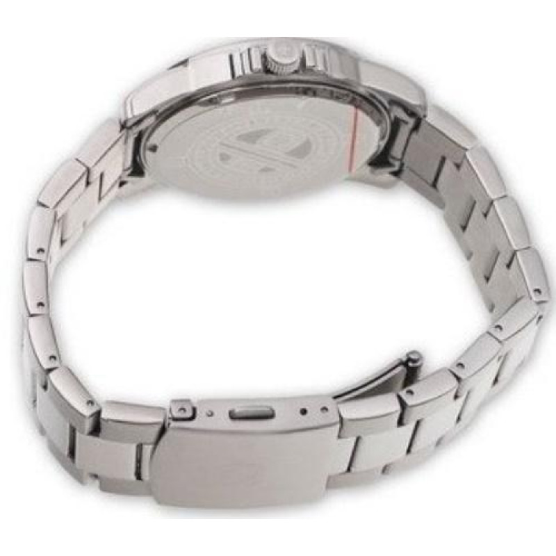 Модель имеет водонепроницаемость 50 м. Корпус выполнен из материала – сталь. Прочное сапфировое стекло надежно защищает циферблат от ударов и других повреждений. Удобный стальной браслет позволяет часам комфортно сидеть на запястье. Из дополнительных функций имеются: дата, секунды.