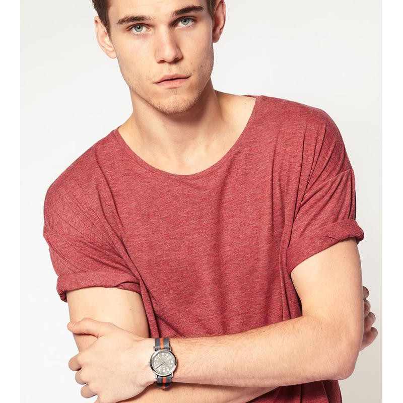 Корпус выполнен из стали. Черный тканевый ремешок с оранжевой вставкой. Цвет циферблата - черный. Ин..