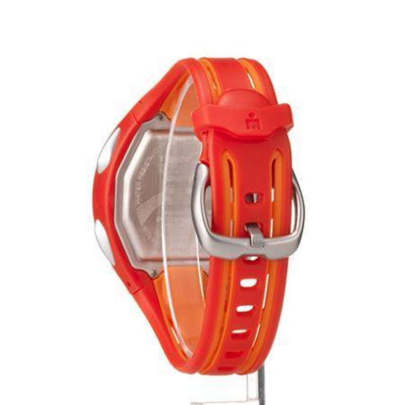 Пластиковый корпус и полимерный ремешок красного цвета. Цвет дисплея - серый. Часы имеют память на 2..