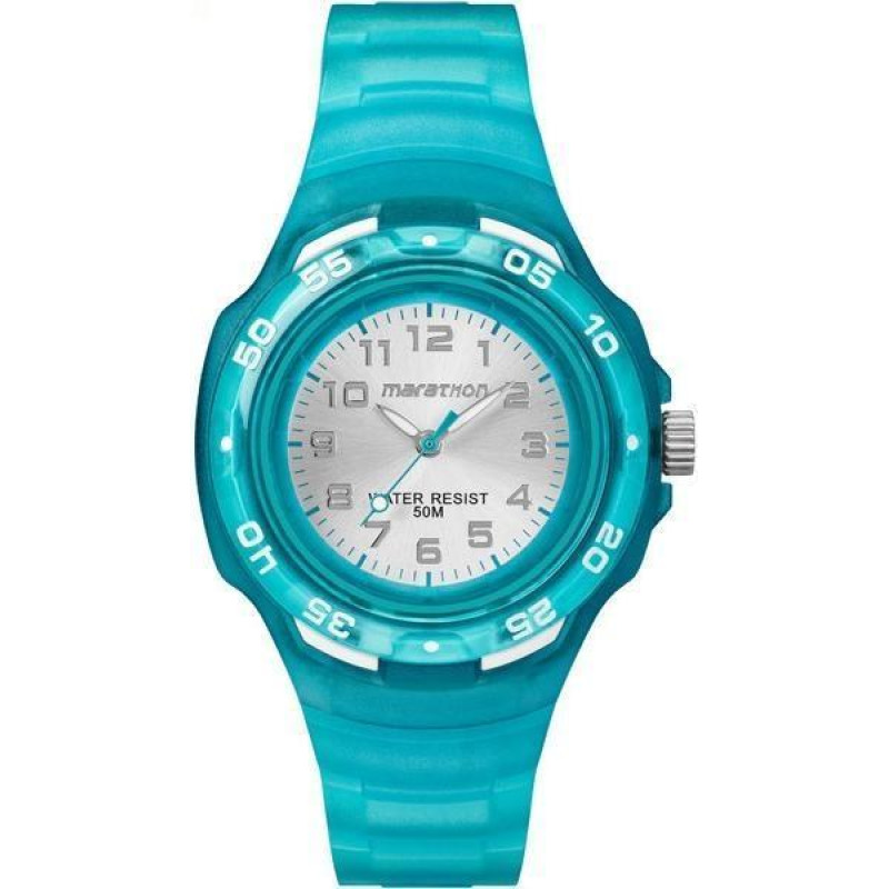 Модель имеет водонепроницаемость 50 м. Корпус выполнен из материала – пластик. Прочное пластиковое стекло надежно защищает циферблат от ударов и других повреждений. Удобный полимер ремешок позволяет часам комфортно сидеть на запястье. Из дополнительных функций имеются: секунды.