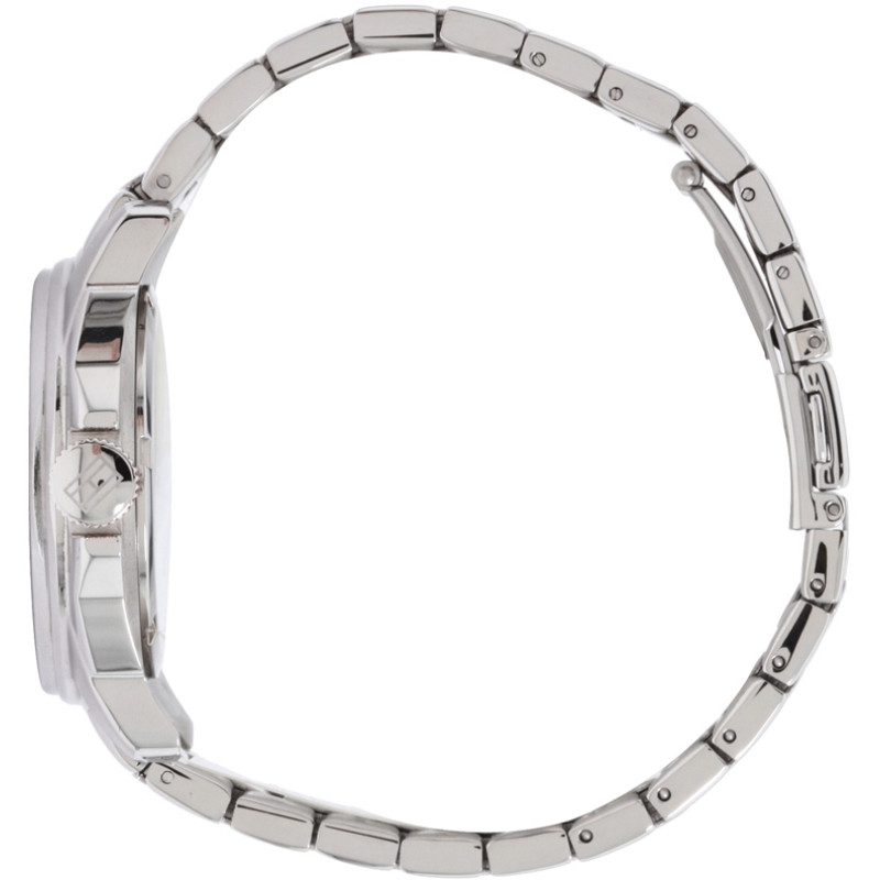 Корпус и браслет выполнены из нержавеющей. Цвет циферблата — белый. Индикация — арабские цифры и мет..