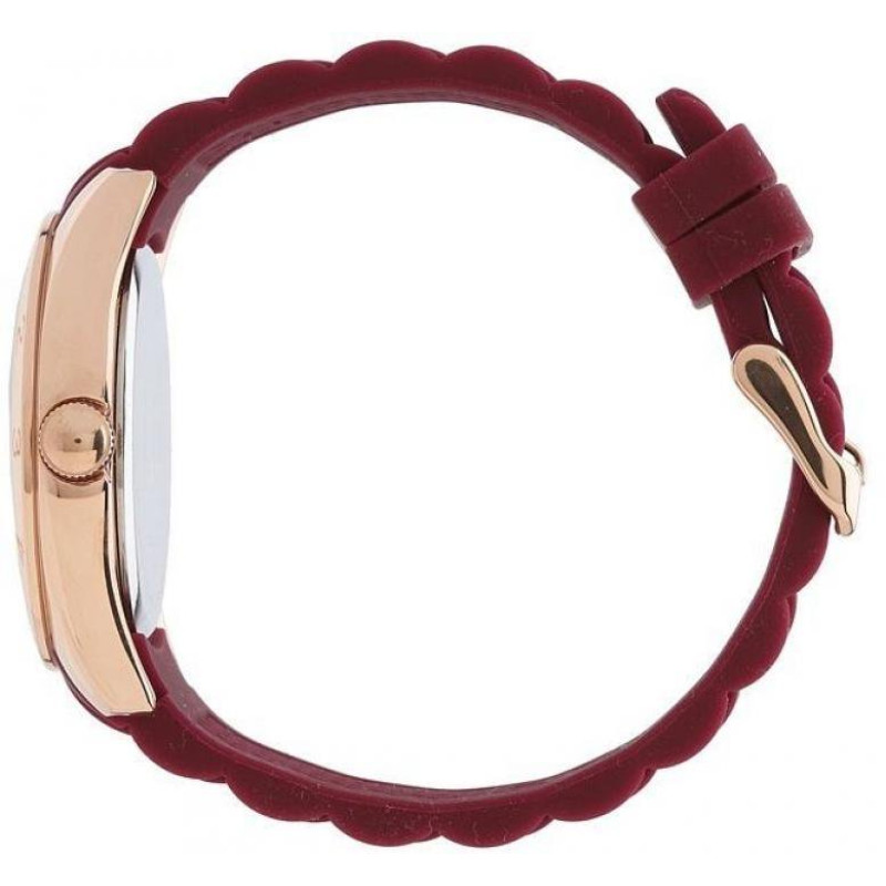 Корпус из нержавеющей стали и покрыт PVD — покрытием цвета розового золота. Ремешок каучук, бордовог..