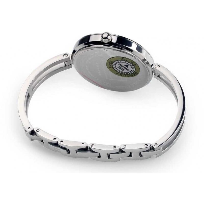 Модель имеет водонепроницаемость 30 м. Корпус выполнен из материала – сталь. Прочное минеральное стекло надежно защищает циферблат от ударов и других повреждений. Удобный стальной браслет позволяет часам комфортно сидеть на запястье. Из дополнительных функций имеются: секунды.