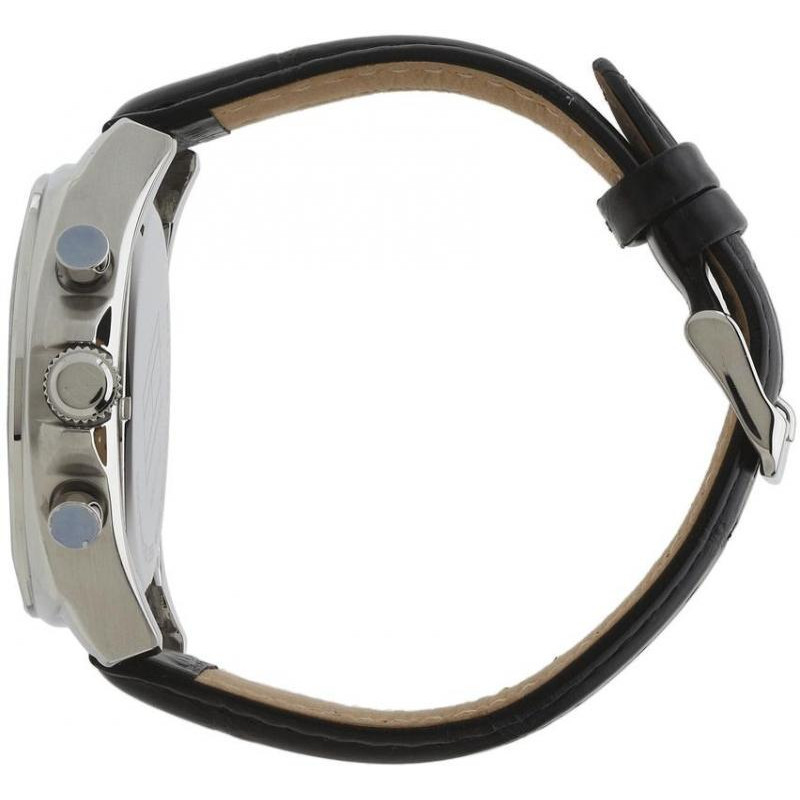 Модель имеет водонепроницаемость 50 м. Корпус выполнен из материала – сталь. Прочное минеральное стекло надежно защищает циферблат от ударов и других повреждений. Удобный кожаный ремешок позволяет часам комфортно сидеть на запястье. Из дополнительных функций имеются: дата, секунды, тахиметр, хронограф.