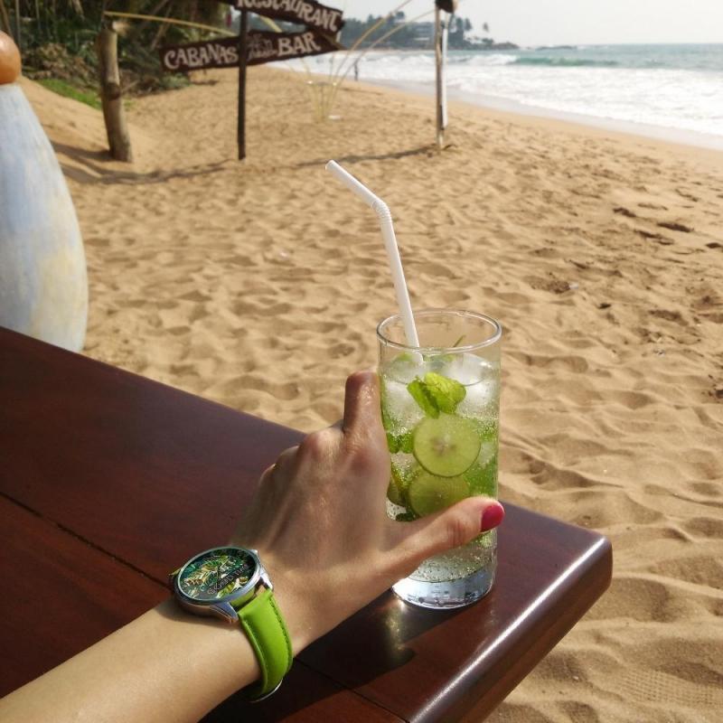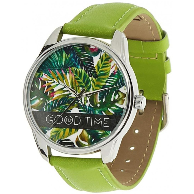 Часы ZIZ маст-хэв "Пальмовые листья". На циферблате часов нарисованы пальмовые листья. Ярко-зеленый ..